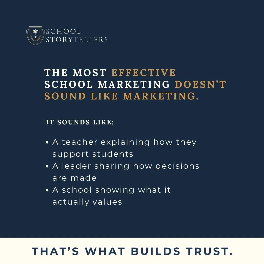 Today, platforms like Google and Meta prioritize authority and clarity over volume. Families are encountering schools through search results, AI summaries, and social content that answers questions — not through polished promotional messaging alone.